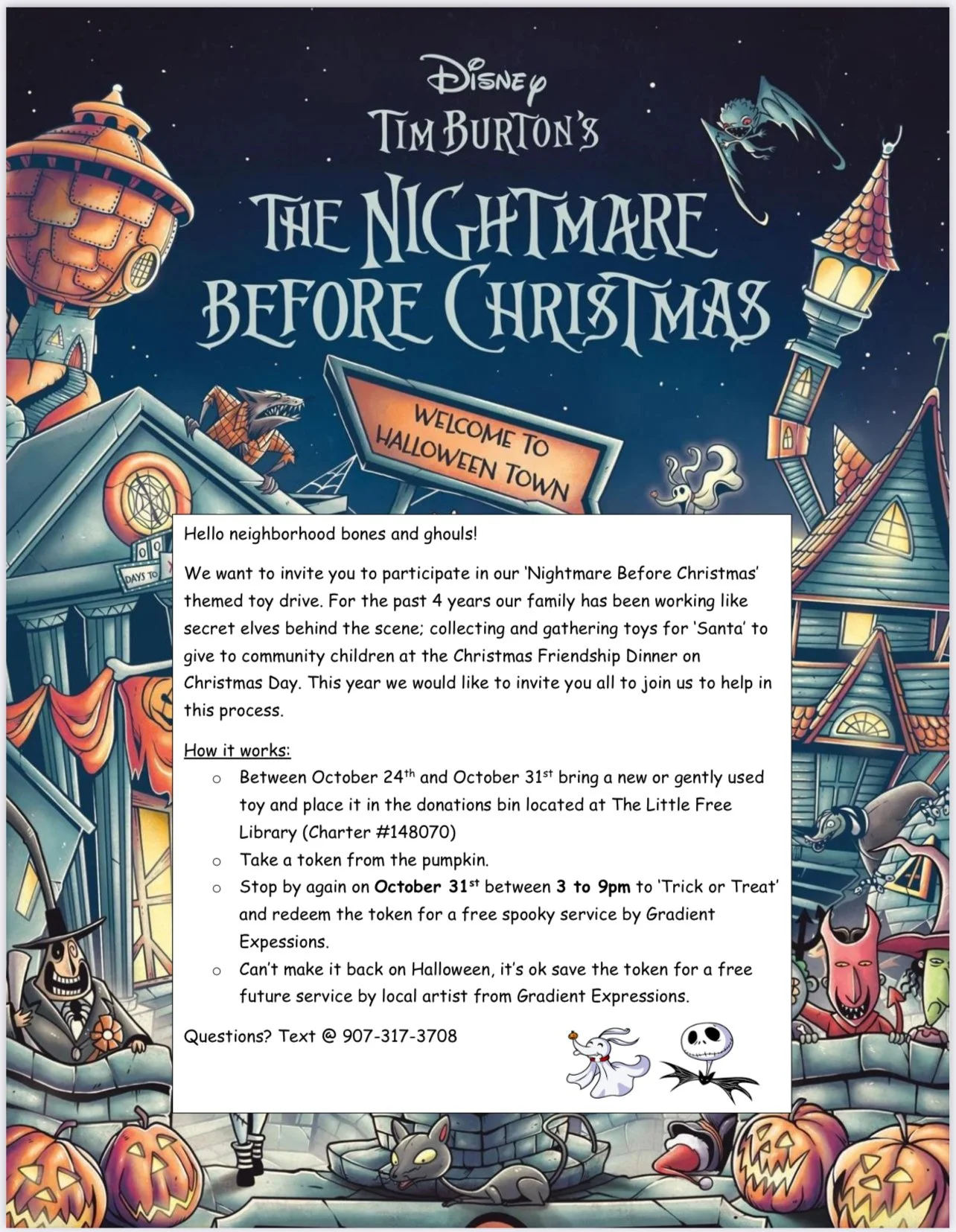 Gather your gently used toys and bring them to our annual Nightmare Before Christmas Toy Drive, held every Halloween at Gradient Expressions.